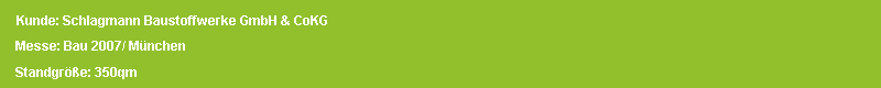 "Wir waren mit unserem Messeauftritt auf der BAU 2007 rundum zufrieden. Angefangen von der Standkonzeption über den Aufbau des Messestandes bis hin zur Betreuung während der Messe - die Abwicklung durch X-hibition hat reibungslos geklappt und die Zusammenarbeit war sehr angenehm. Wir können das Team um Herrn Klemm nur weiterempfehlen."